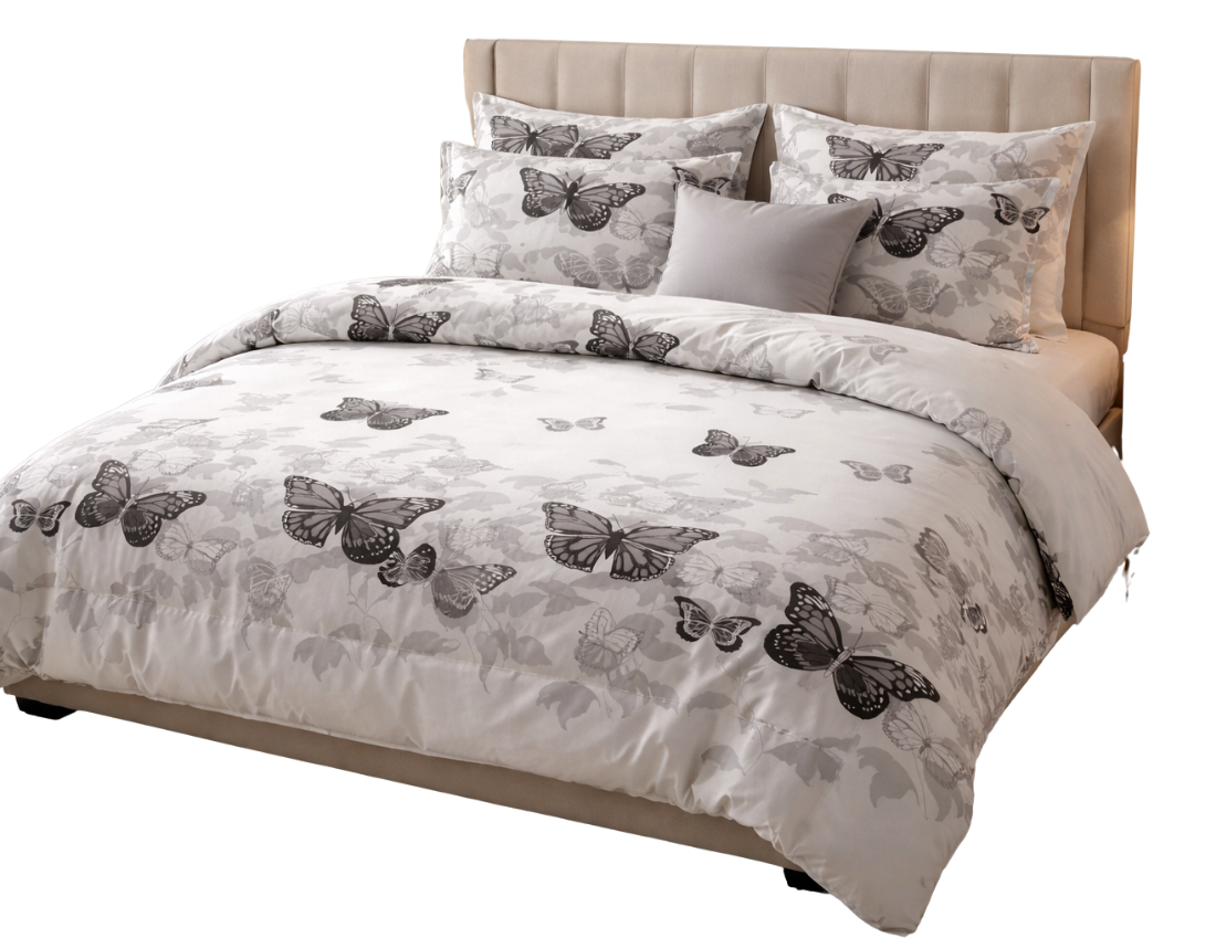 Strona główna » POŚCIEL » Pościel 140x200 bawełna satynowa w motyle z prześcieradłem – elegancki komplet 4cz PK499