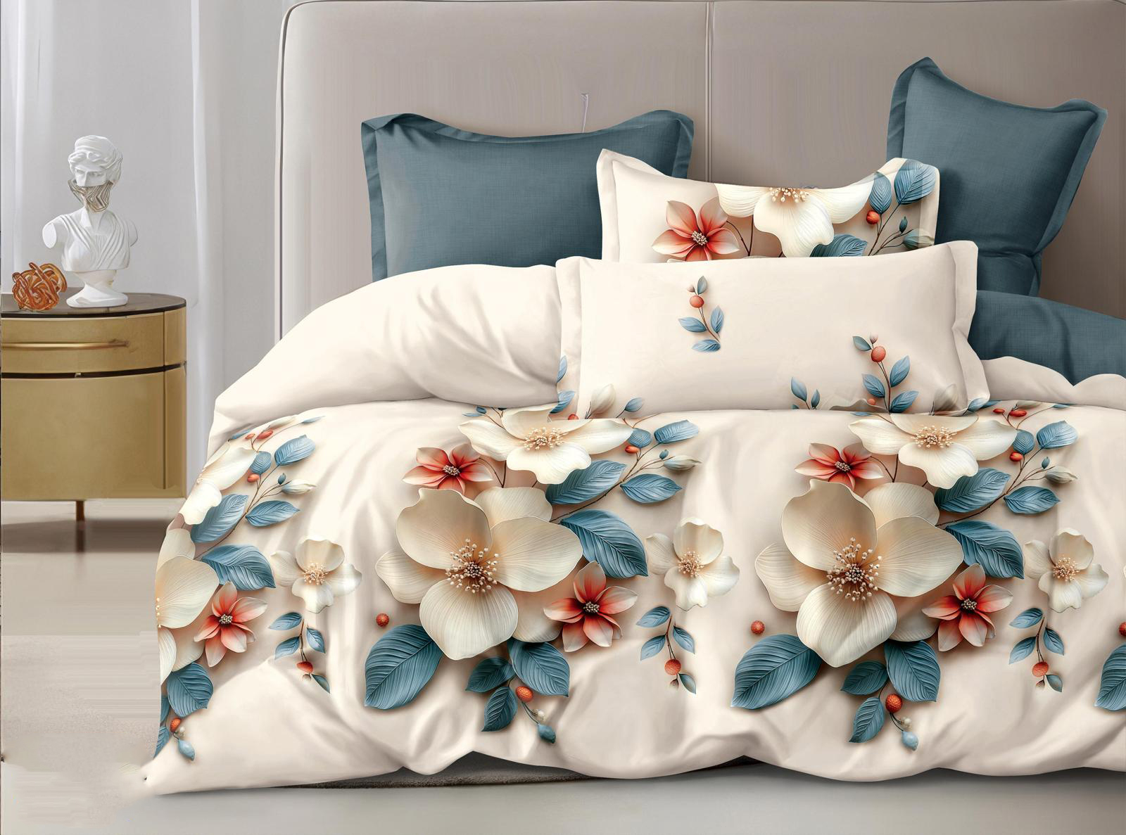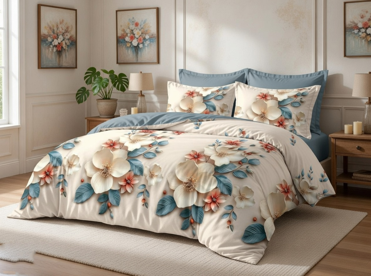 Elegancka pościel inspirowana naturalnym pięknem kwiatów w kolorze kremowym