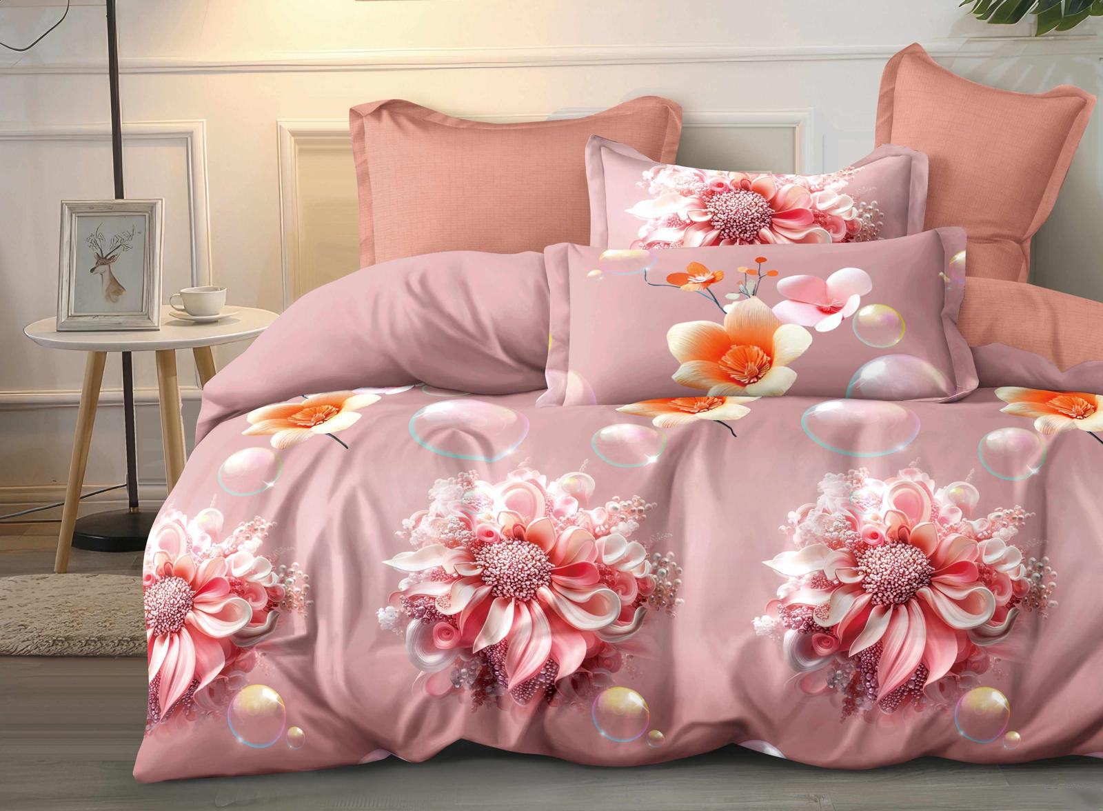 Pościel 160x200 bawełna różowa w kwiaty PK780 z PRZEŚCIERADŁEM