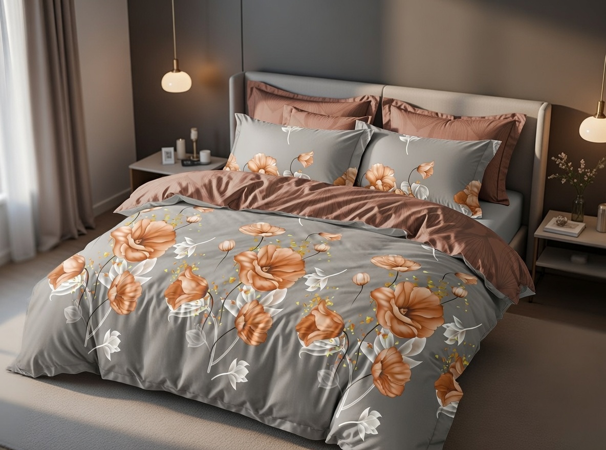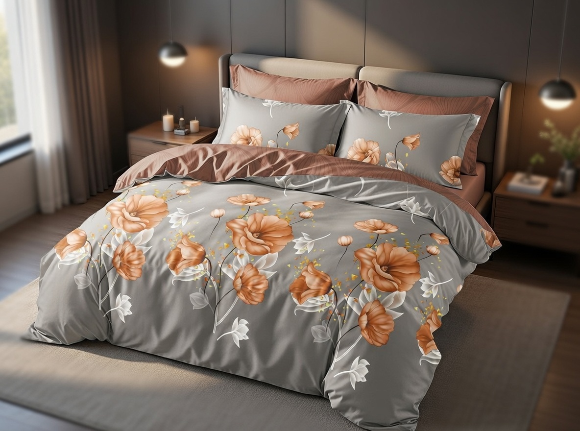 Strona główna » POŚCIEL » Pościel 160x200 bawełna szara w brązowe kwiaty PK777 z PRZEŚCIERADŁEM