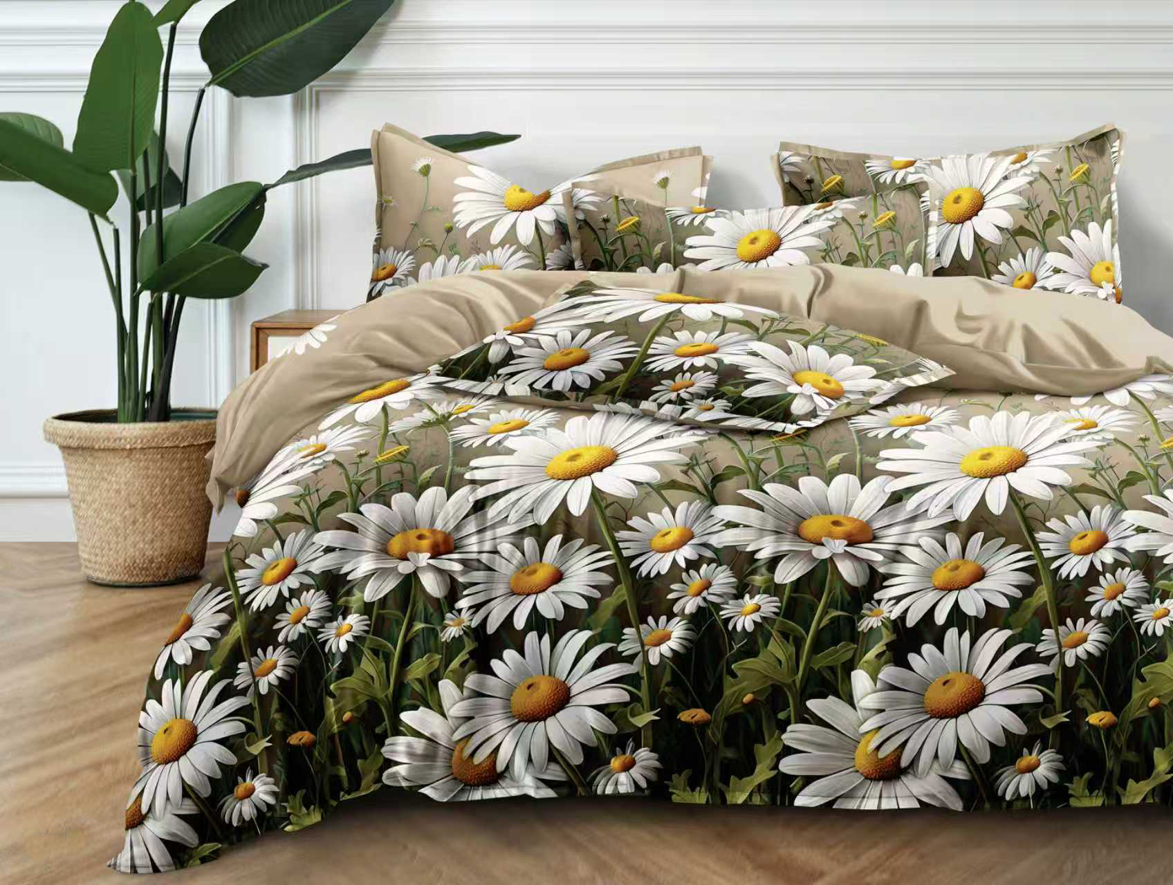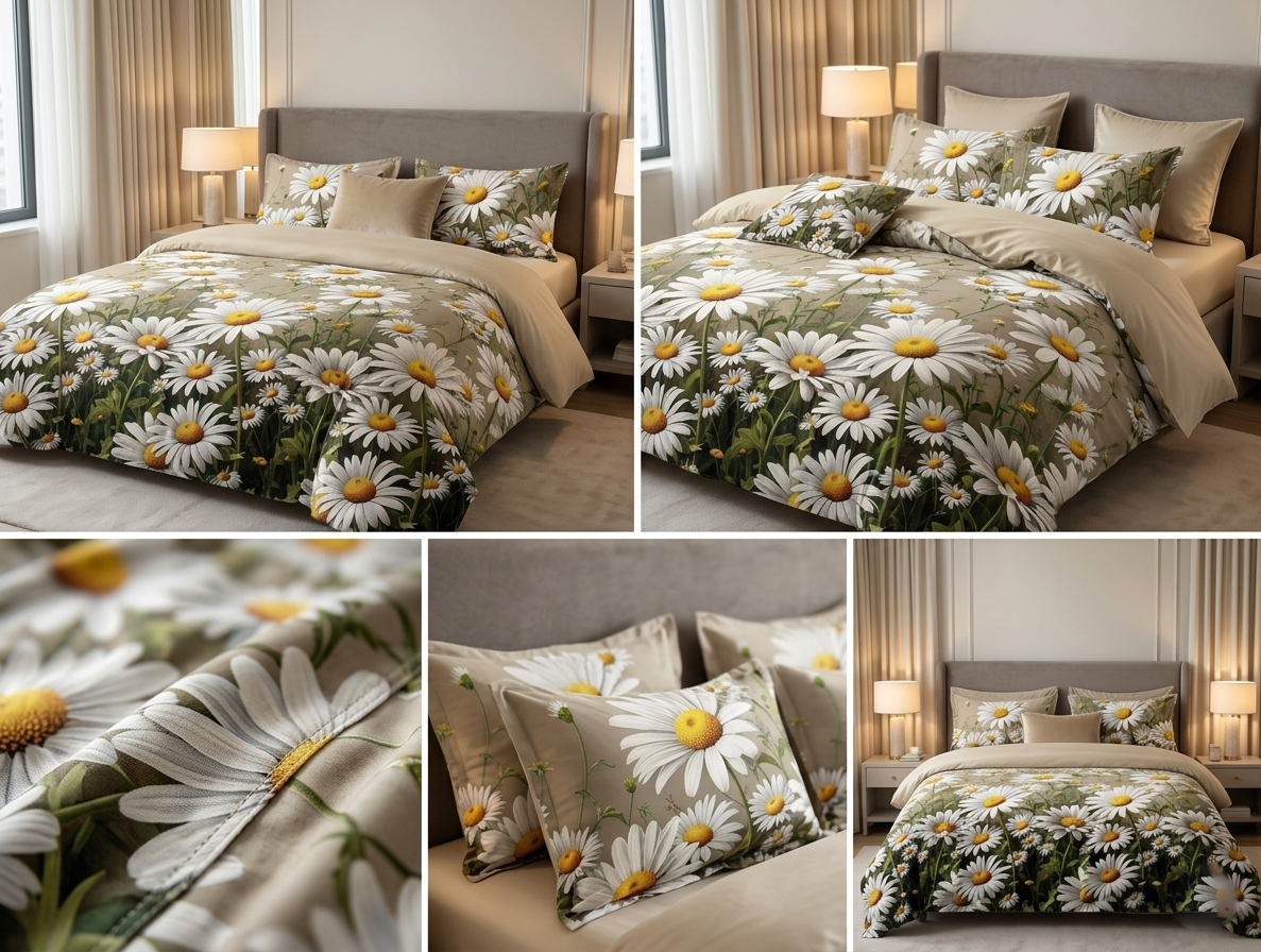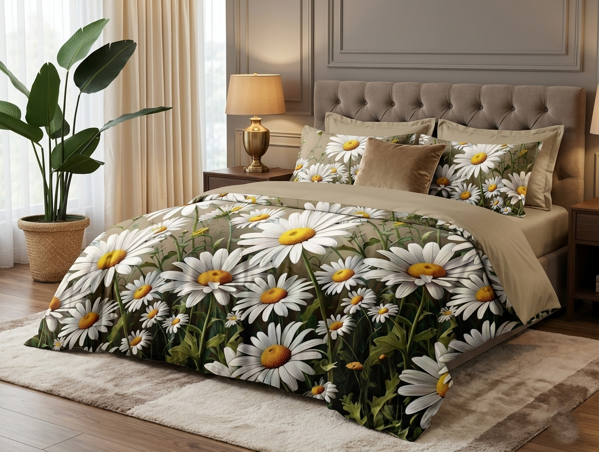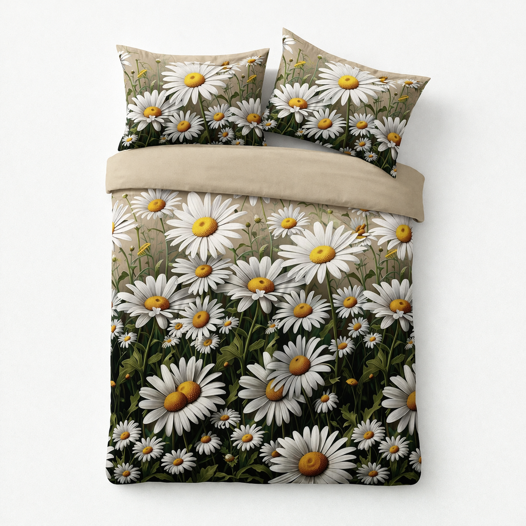 Strona główna » POŚCIEL » Pościel satynowa 160x200 w stokrotki – komplet premium PK815