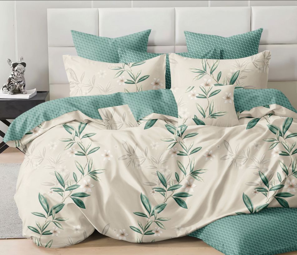 Pościel bawełna 100% 160x200 kremowa zielone kwiaty  PB588