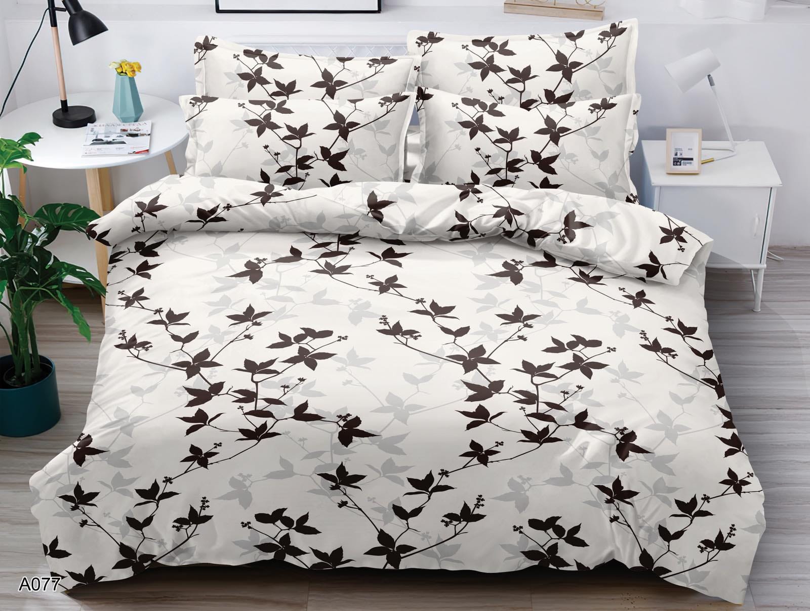 Pościel 160x200 bawełna satynowa biała w liście PK492