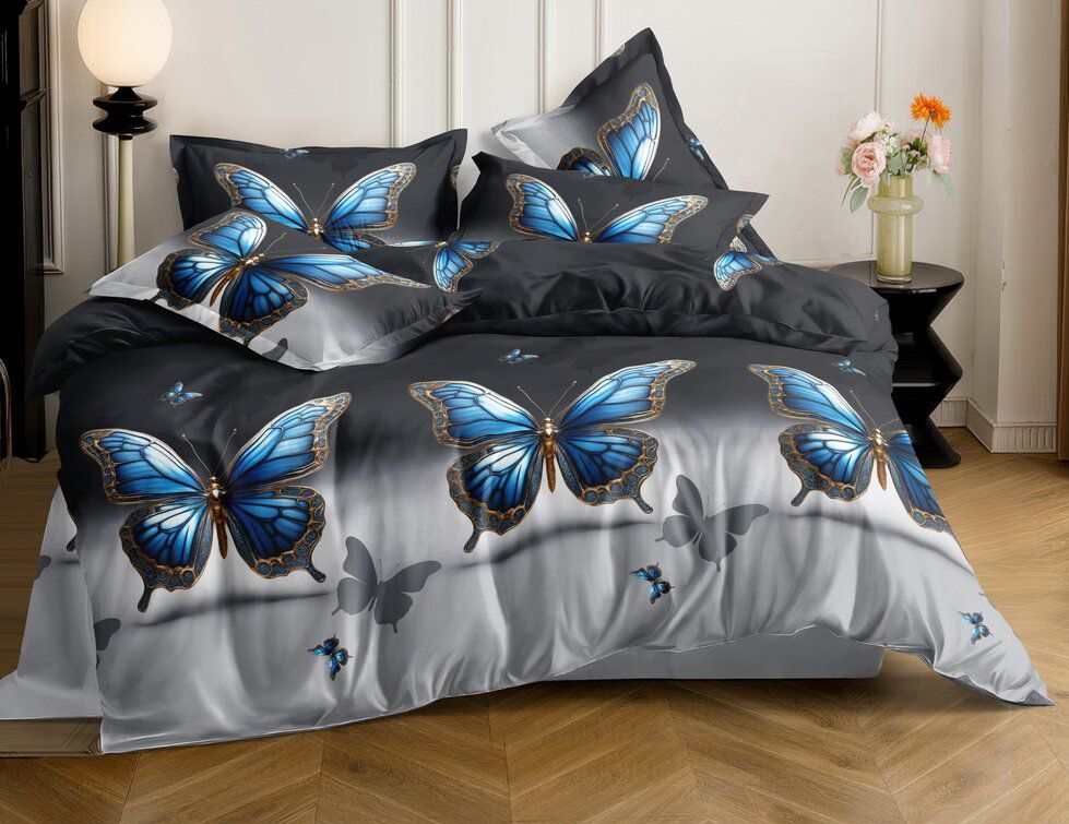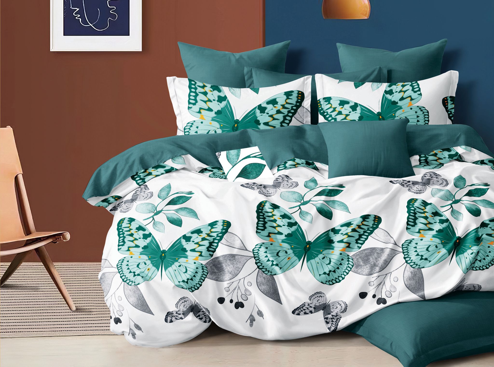 Pościel 160x200 bawełna satynowa zielona w motyle PK488 z prześcieradłem